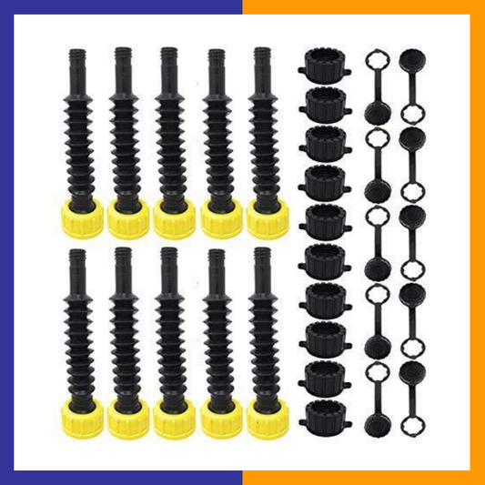 Flexible Replacement Gas Spout with Fine and Coarse Thread Caps (Pack of 10)
