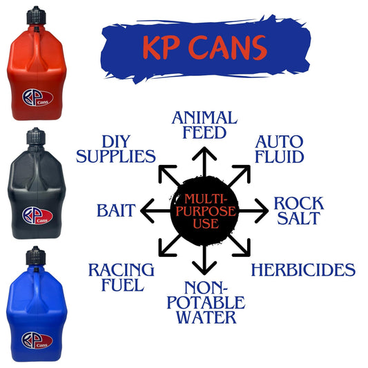 KP Cans 5.5 Gallon Square Motor Racing Jug | BPA Free Multi-Functional Utility Container w/ 15inch Clear Flexible Fuel Filler Hose Kit and Dual-Purpose Cap
